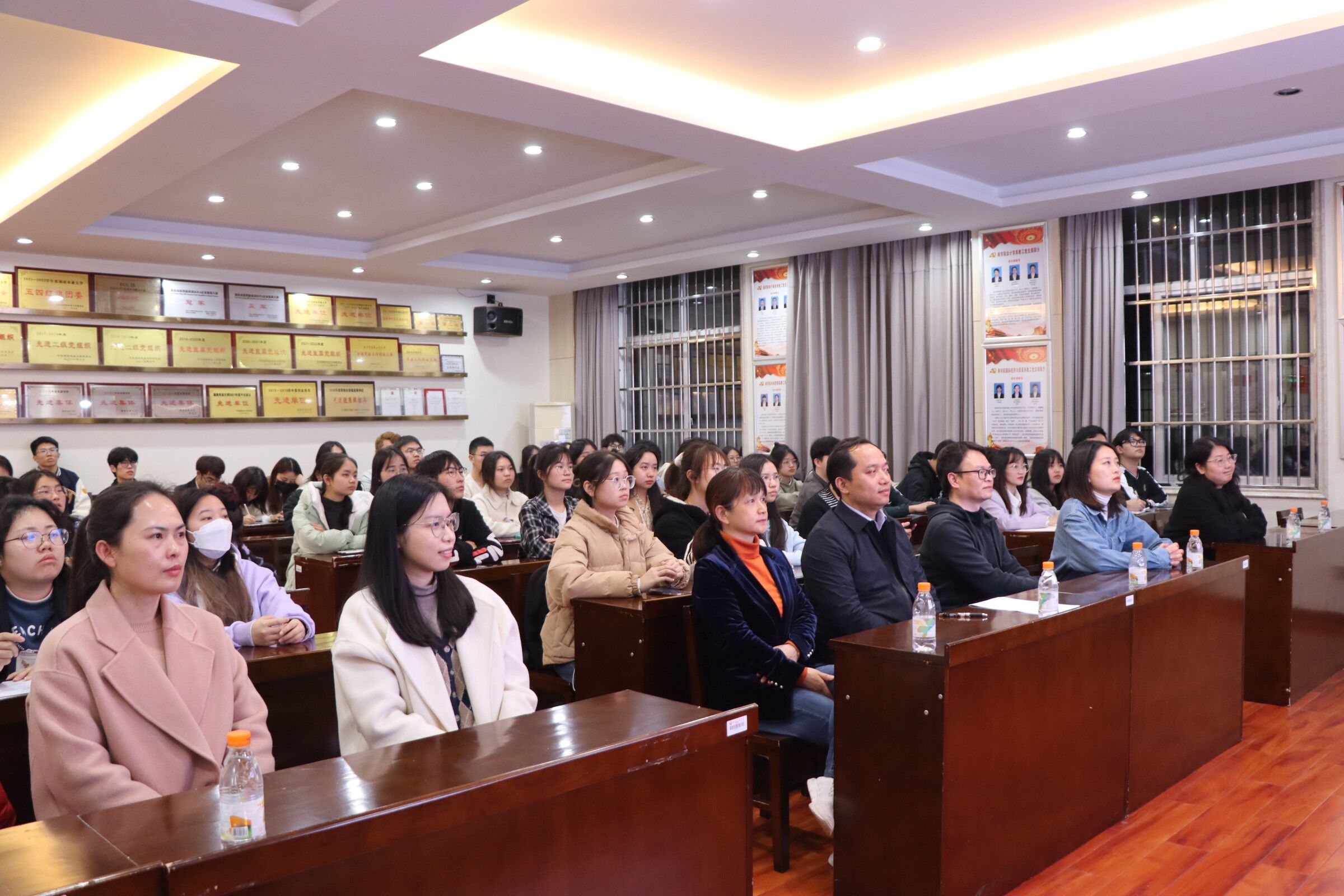 意昂体育组织师生观看《闪亮的名字——2022最美老员工/最美高校辅导员》发布仪式